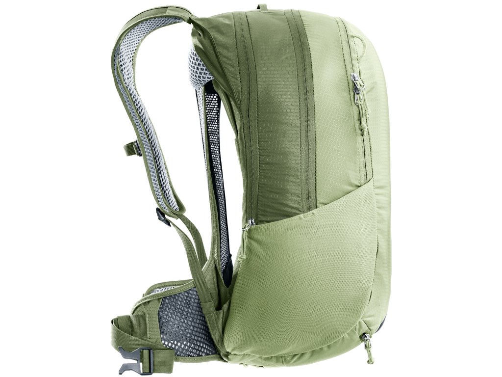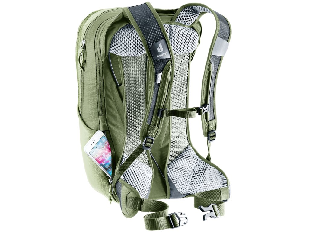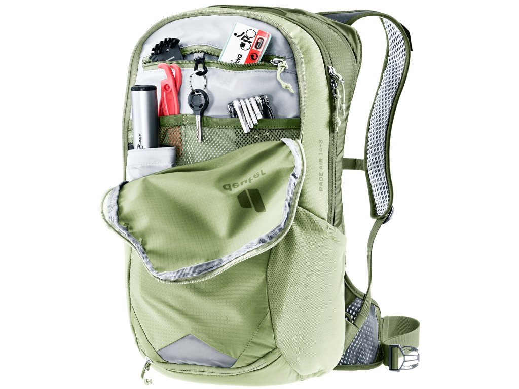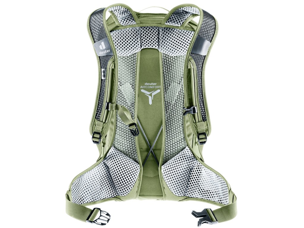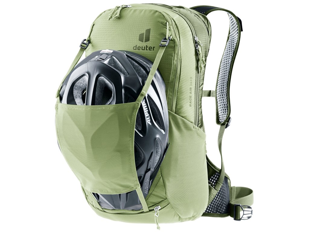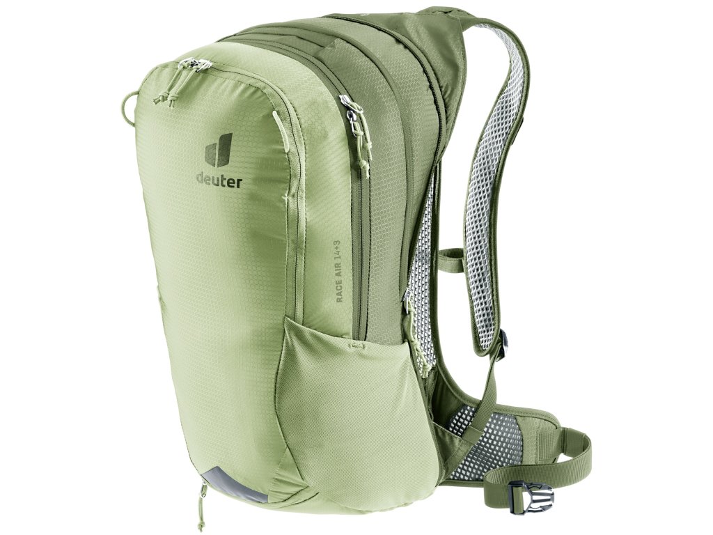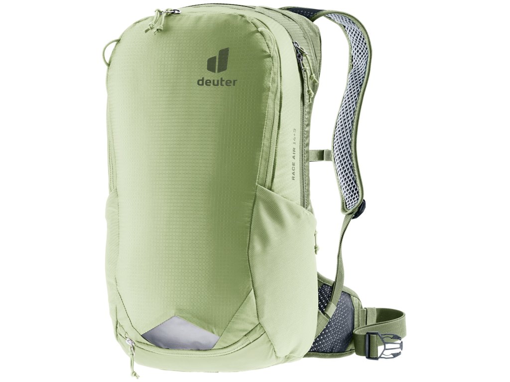Deuter Race Air 14+3 - Lehký a přitom odolný batoh na kolo s vynikajícím komfortem a možností rozšíření o další 3 litry. Zádový systém deuter Aircomfort, navržený speciálně pro cyklistiku, se síťovaným zádovým panelem rozděleným uprostřed znamená, že ještě menší část batohu je v přímém kontaktu se zády a poskytuje více prostoru pro páteř v jízdní pozici. Vzdušné síťované bederní pásy, perforované ramenní popruhy a zádové polstrování zajišťují maximální proudění vzduchu a pevné nošení. Batoh je vyroben z materiálů neobsahující PFC využívá 100% recyklovanou tkaninu schválenou společností bluesign®