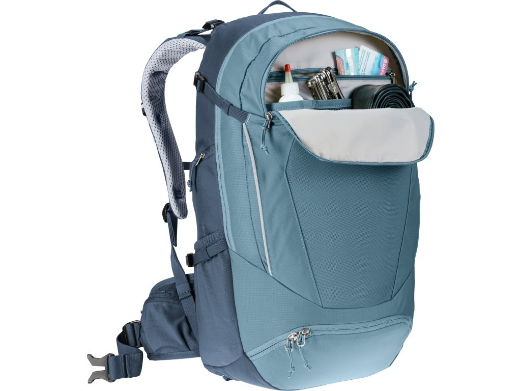 Deuter Trans Alpine 30 - Dnes již legendární batoh, který stále patří mezi nejprodávanější větší cyklistické batohy na trhu. Lehkou inovací prošel design batohu, vše podstatné zůstává beze změny. Použití tohoto batohu však není omezeno jenom na cyklistiku, díky své praktičnosti a vysoce kvalitnímu zpracování lze využívat lehkou turistiku a nebo i jako batoh ke každodenímu použití do práce atd. Hlavní předností je tedy univerzálnost, dobře padnoucí zádový systém a odolnost.