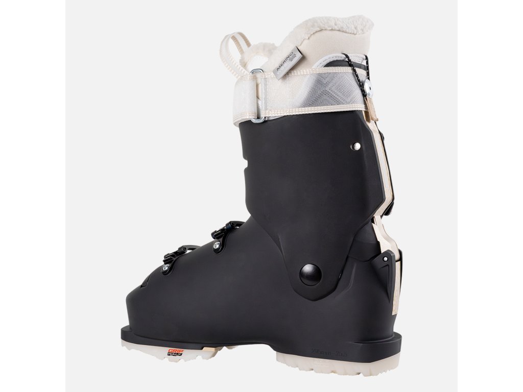 Vkročte do revoluce – bezkonkurenčně snadný nástup do lyžařské boty díky inovativnímu designu Step In systému nazouvání. Dámské lyžařské boty Rossignol Vizion 4B Pro 90 Women jsou vyrobené pro lyžařky, kteřé hledají pohodlnou botu širokou 100 mm s flexí 90. Boty mají absolutně přelomový design skeletu, který se vzadu široce otevírá, pro až skandálně snadné nazouvání. To vše díky inovativnímu spoileru který za pomoci zapínacího mechanismu do široka rozevře komín a už stačí jenom "vkročit" do boty. Celý proces otevření boty zajištuje sdružená přezka s mechanizmem aretace spoileru. Ovládání je intuitivně jednoduché a maximálně pohodlné. Tak stačí jen rozepnout, vkročit, zapnout a lyžovat....