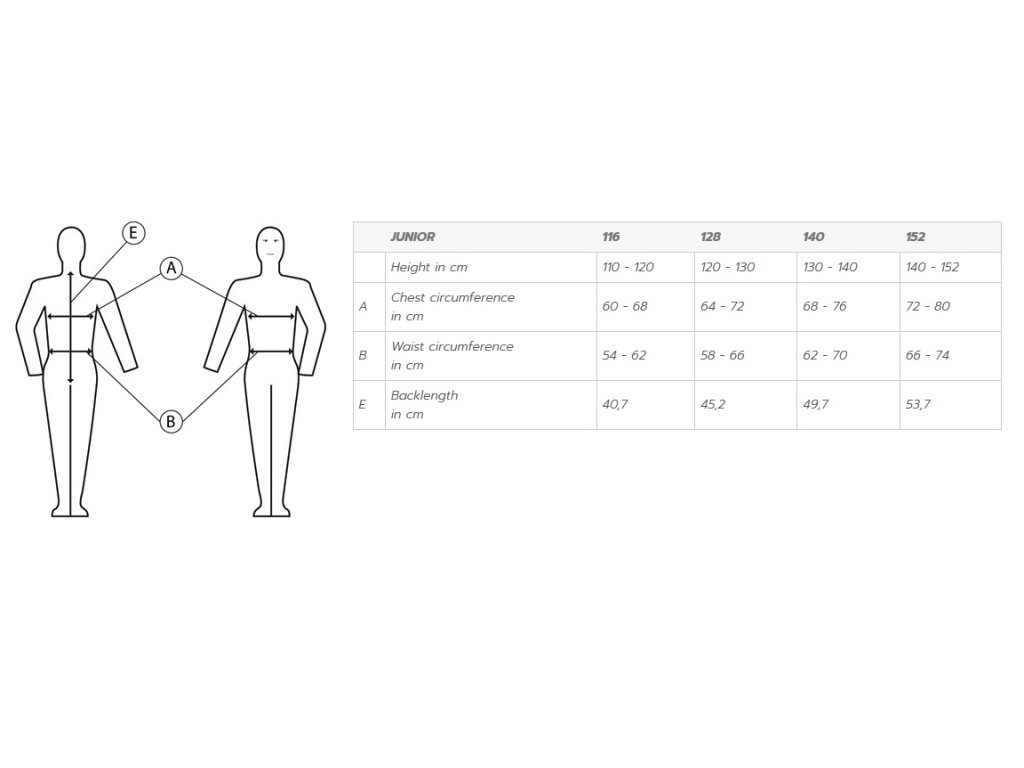 - Velikosti orientačně : viz. přiložená tabulka, dle našich zkušeností XS - 116 ( 110 - 120 cm ) / S - 128 ( 120 - 130 cm ) / M - 140 ( 130 - 145 cm ) cm / L - 152 ( 145 - 160 cm )