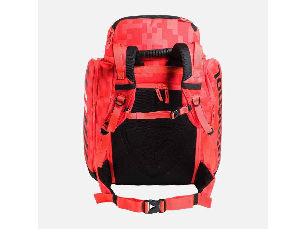 Rossignol Hero Athletes Bag - Velice prostorný batoh pro Vaše vybavení, boty a helmu, který je používán závodníky Světového poháru. Tento batoh s velkou hlavní komorou byl vyroben z materiálů 600D Polyester a PVC, má vnitřní kapsy na zip určené pro lyžařské boty, prostor na helmu a kapsu pro brýle s fleecovou vložkou. Velká hlavní komora se snadným přístupem z vrchu, zepředu nebo ze zadní části batohu pojme zbytek Vašeho vybavení. Batoh má polstrované, anatomické popruhy, hrudní a bederní pás. Toto všechno Vám zajistí, že můžete batoh nosit s lehkostí.