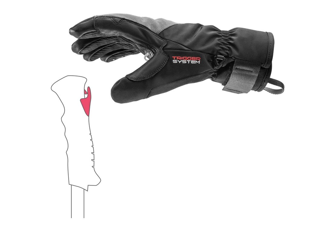 Všestranné lyžařské rukavice od Leki s integrovaným poutkem Trigger 3D/S. Svršek je vyroben ze softshellu, dlaň je rovněž vyrobena ze 100% prémiové kozí kůže s dodatečnou gripovou nášivkou ze Silicone Nash. Tato kombinace zajišťuje velmi pohodlné nošení a zároveň perfektní přilnavost k holi. Díky membráně GORE-TEX® a podšívce Micro Bemberg jsou vaše ruce optimálně chráněny před chladem, mokrem a větrem. Systém Trigger 3D umožňuje zacvaknutí do hole během několika sekund, čímž zajišťuje přímé spojení mezi rukavicí a holí, a tím i nejlepší přenos síly. Trigger 3D je kompatibilní se všemi předchozími holemi Trigger S.