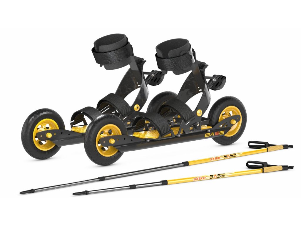 Skike Base Starter Kit - Akční sada základních skike vycházejích z původní řady skike v07 a nastavitelných holí skike. Jedinečná příležitost pro všechny co chtějí původní celohliníkové skike s pevnou patou. Prakticky se jedná o skike v07 Plus vyráběné do roku 2019. Tyto lehké kolečkové lyže s pevnou patou jsou nejlepším doporučením pro všechny začínající nordic bruslaře, který nechtějí do nového vybavení příliš investovat. Startovací sada se skládá z páru 1 páru skike a páru třídílných nastavitelných hliníkových holí a má všechny předpoklady pro snadné bruslení jak na silnici tak na zpevněných cestách. Skike Base mají 150mm (6palcová) kolečka, účinné brzdy, které kombinují bezpečnost a kontrolu nad jízdou. Různé možnosti nastavení (popruhy, brzdy, rozvor, X/O noha) zaručují zábavu při jízdě v přírodě.