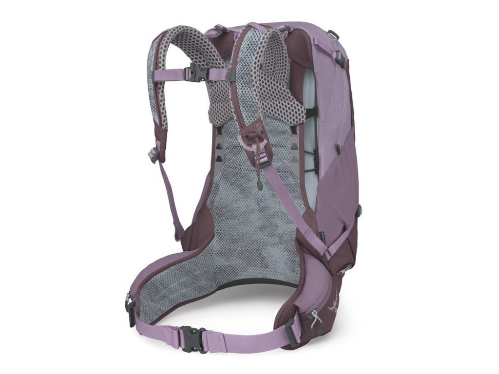 - Zádový systém : Airspeed- Inovativní systém firmy Osprey poskytuje vysokou úroveň pohodlí a větrání to vče při zachování nízké hmotnosti. Základem je nosný rám a síťka, která vytváří vzduchový prostor mezi batohem a tělem.